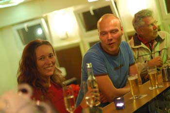 Da leuchten die Äuglein. Chef und Chefin mit Rotkäppchen.